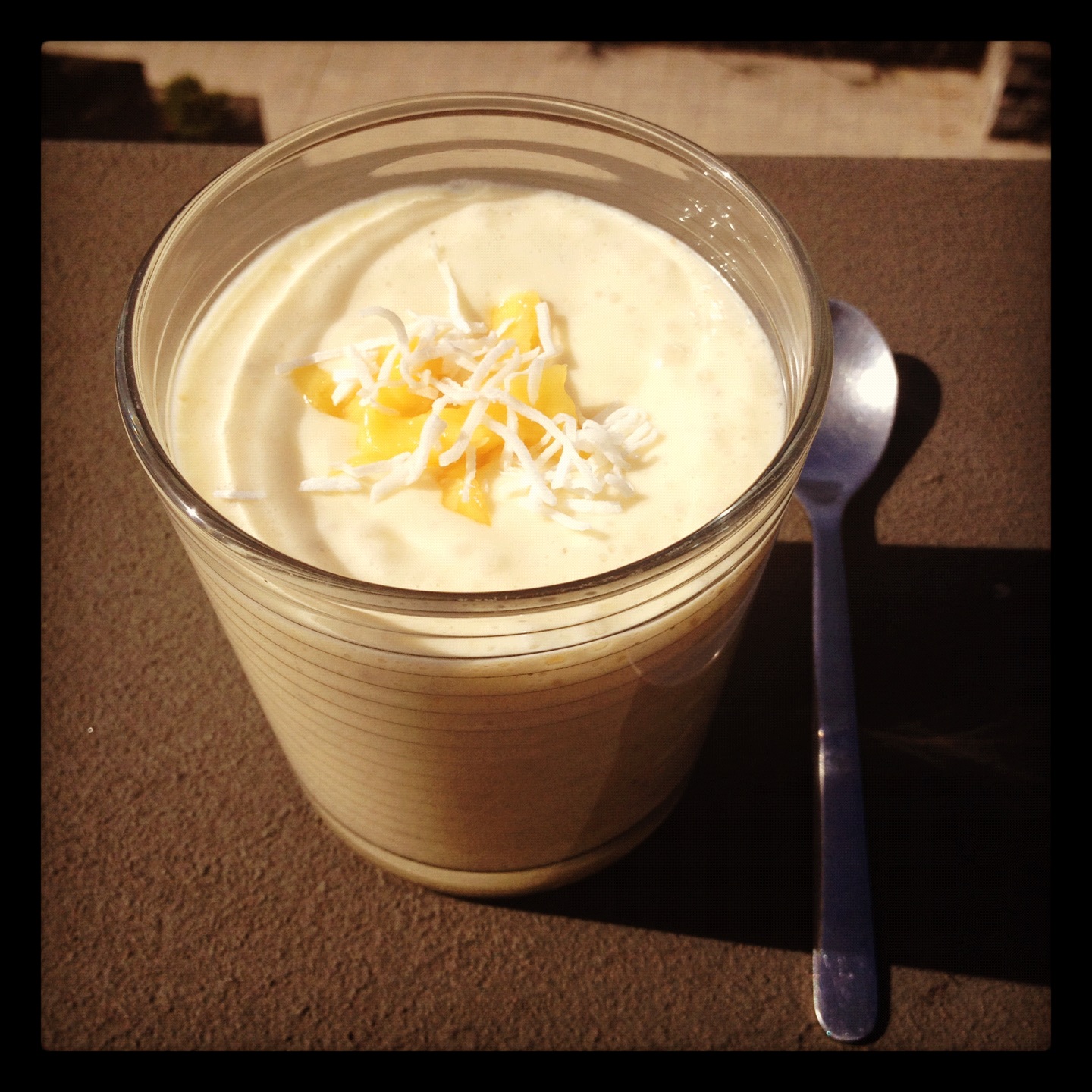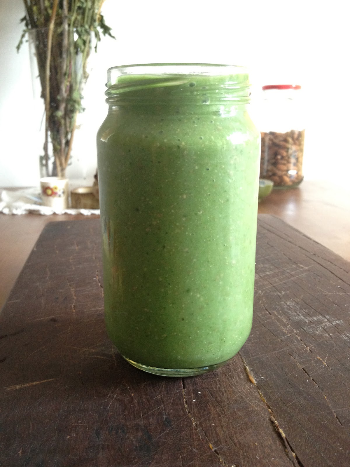 Place all ingredients in a blender (I only have a handheld so that's what I use), and blend until smooth.